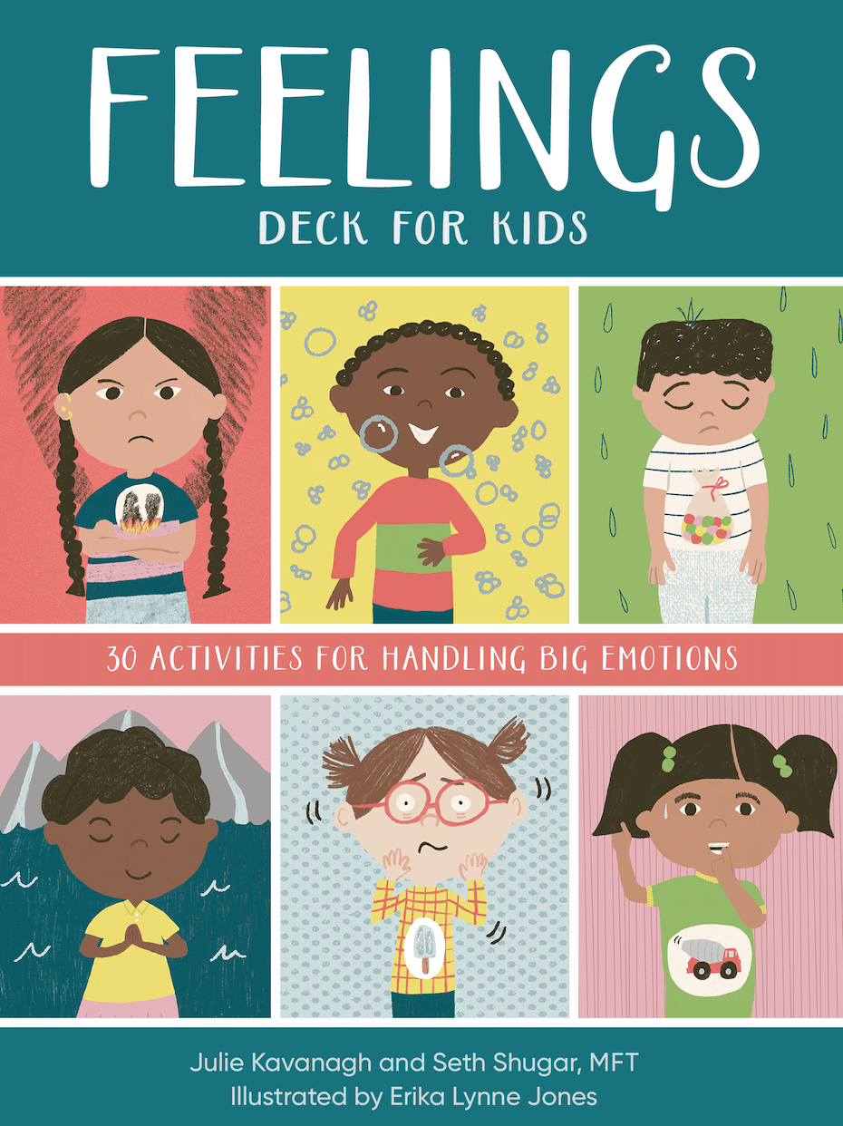 The Feelings Deck for Kids is a playful card deck that teaches kids ages 5–9 to name and feel emotions in their bodies, with 30 activities to regulate emotions and teach body awareness.